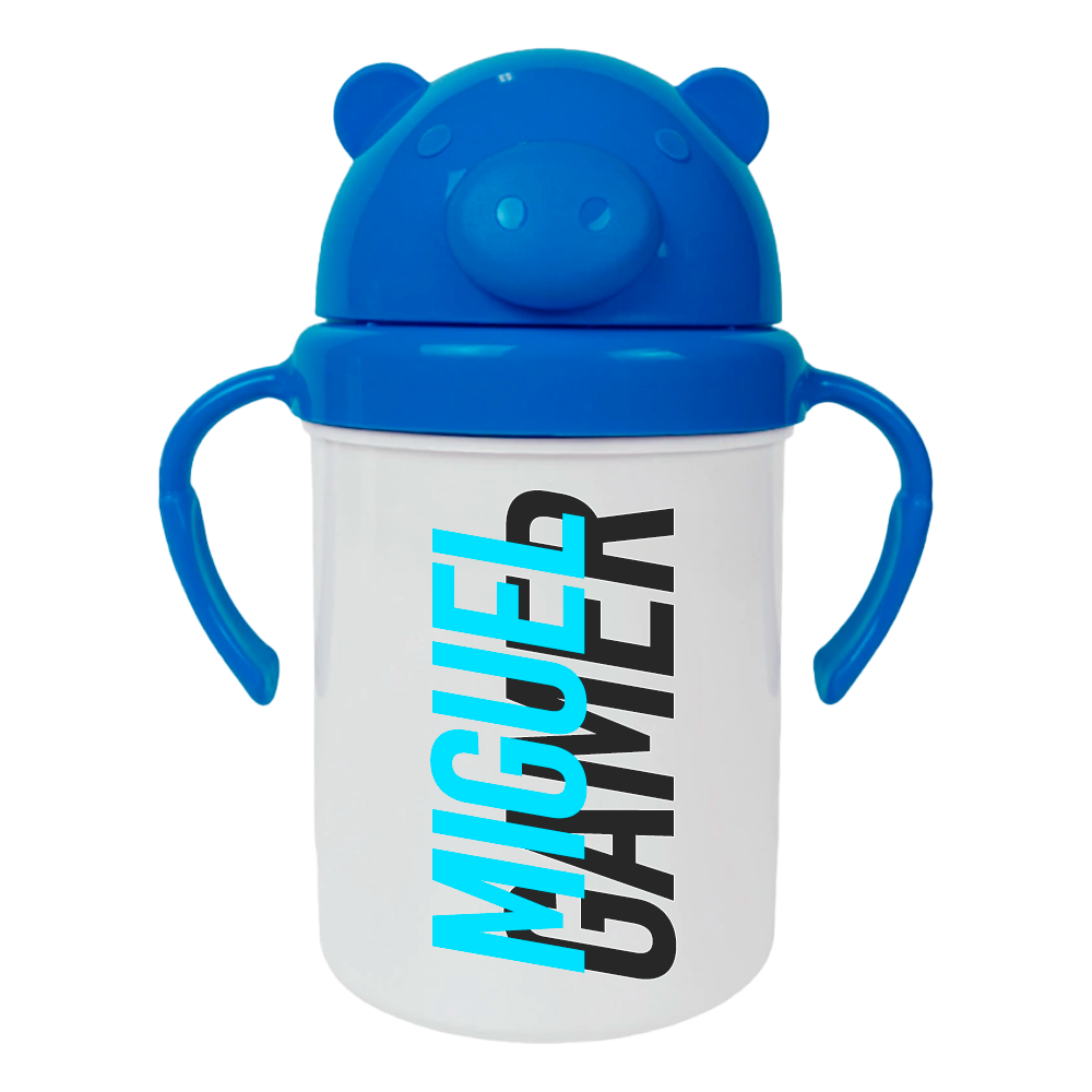 Cantimplora infantil oficial de Miguel Gamer, con tapa en forma de osito y diseño divertido para los más pequeños.