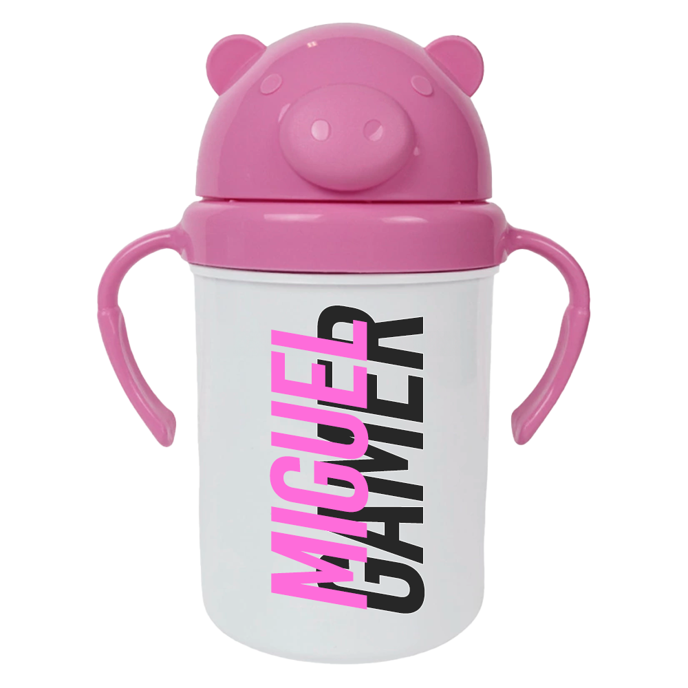 Cantimplora infantil oficial de Miguel Gamer, con tapa en forma de osito y diseño divertido para los más pequeños.