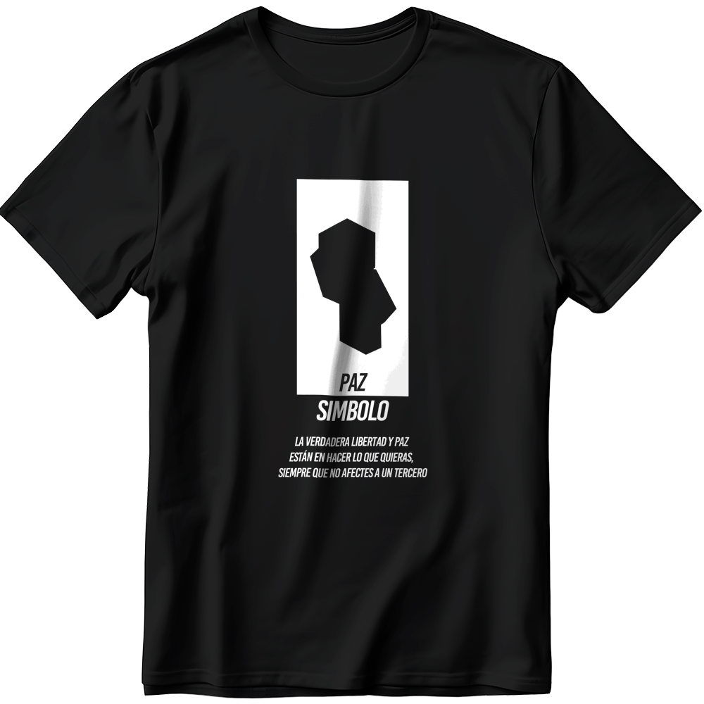 Remera Paz – Freedom Edition de Miguel Gamer, negra con estampado blanco y la frase «La verdadera libertad es hacer lo que quieras sin que afecte a un tercero.»